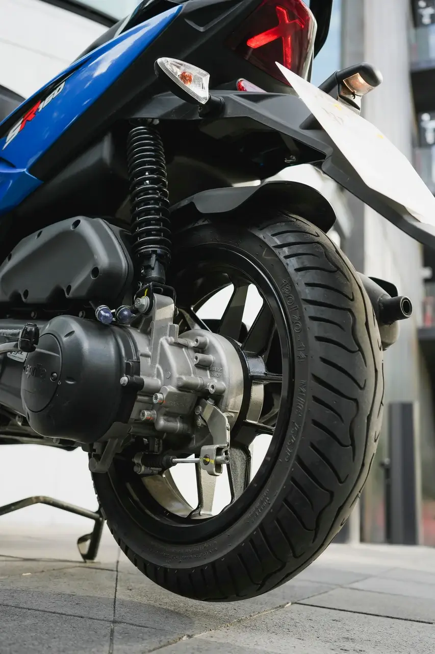 Los neumáticos mantienen el agarre, asegurando un control, estabilidad, comodidad y seguridad superiores en diversos terrenos, con la suspensión de horquilla delantera y la suspensión trasera ajustable en la variante de 160cc.